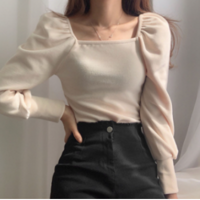 korean style ladies ladies fashion slim puff sleeve shirt blouse baju wanita lengan panjang(2pcs)