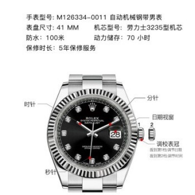 home > Watch > cell phone > Swiss Rolex Watch Datejust 41 Series Automatic Mechanical Men's Watch M126334-0011 Black Disk With Diamond Three-Grid Chain