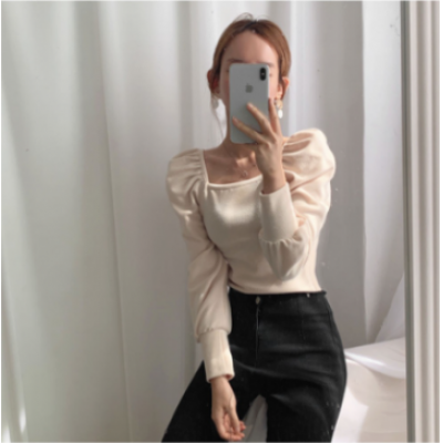 korean style ladies ladies fashion slim puff sleeve shirt blouse baju wanita lengan panjang(2pcs)